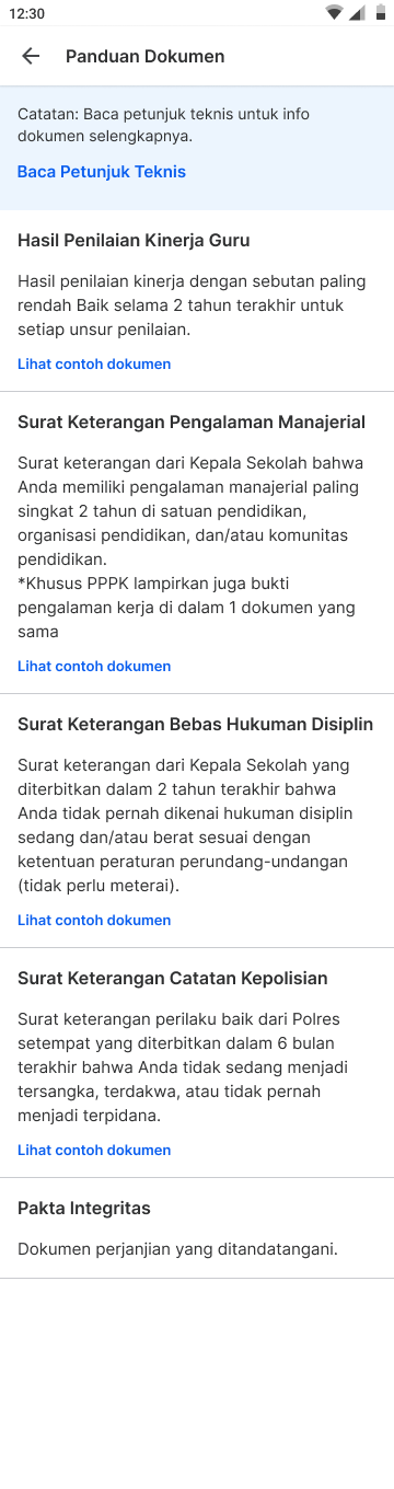 Jika klik Baca penjelasan tiap berkas, Anda bisa melihat syarat-syarat berupa panduan dokumen yang berlaku.