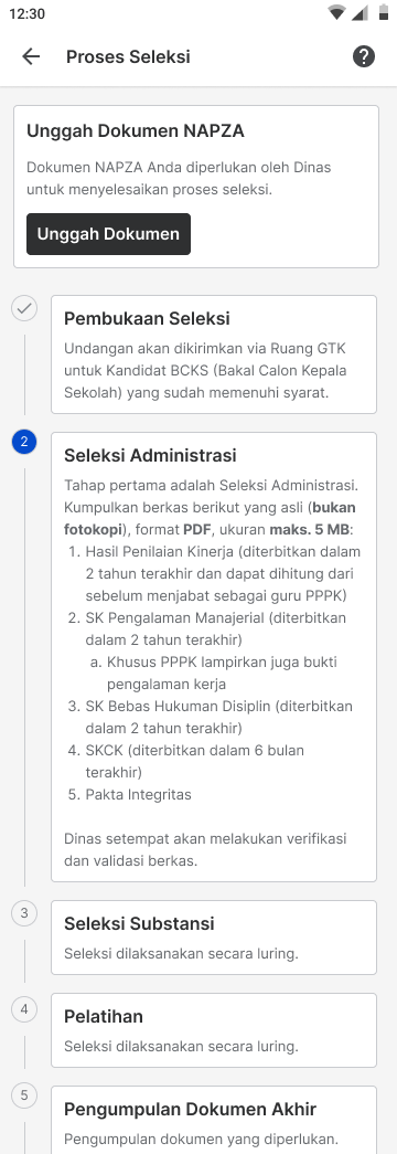 - Undangan Resmi dari Dinas Pendidikan – Guru menerima surat undangan resmi yang berisi tawaran mengikuti Seleksi Kepala Sekolah di Ruang GTK.