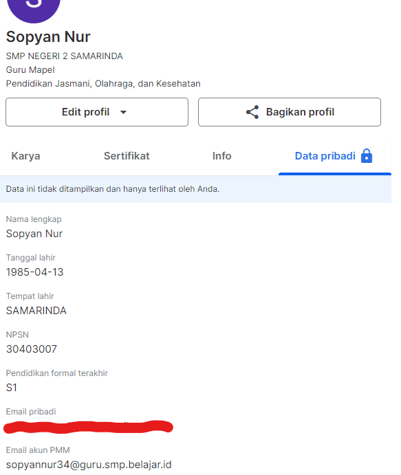 1. email akun PMM pada profil tidak sesuai, tidak sama, tidak serupa dengan akun yang sebenarnya. akun yang sebenarnya adalah sriapriani14@guru.sd.belajar.id,. mohon untuk diganti.