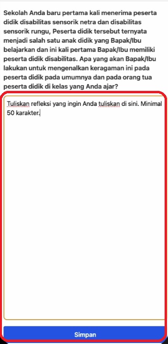 - Tulis refleksi Anda sesuai dengan pertanyaan atau panduan pengerjaan refleksi.