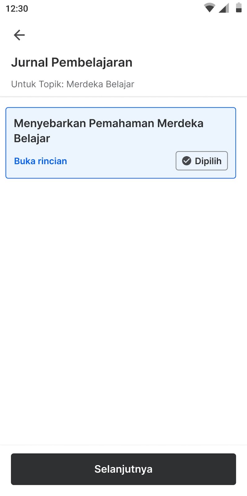 Jika jurnal pembelajaran Anda telah lolos divalidasi, status akan berubah menjadi Selesai.