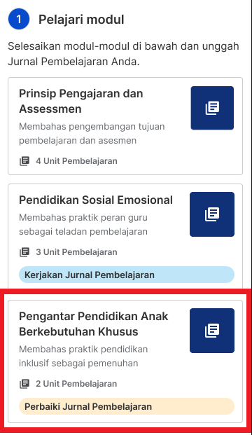 Akan muncul jika semua modul telah selesai dipelajari, post-test telah dikerjakan. Unggah Jurnal Pembelajaran Anda sesuai panduan pengerjaan