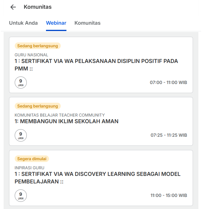 Bagaimana cara membagikan informasi/jadwal webinar komunitas ke rekan guru?