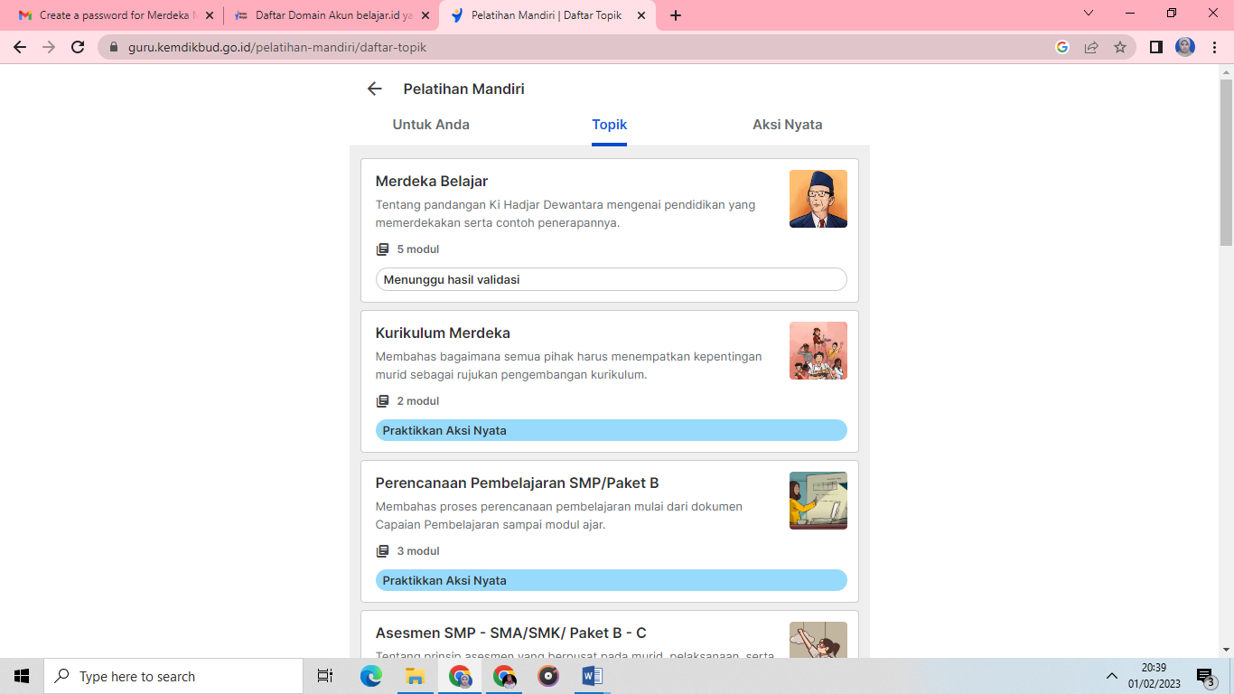 Berikut bukti pemanfaatan akun belajar.id saya yang nisaulhusna62@guru.smp.belajar.id