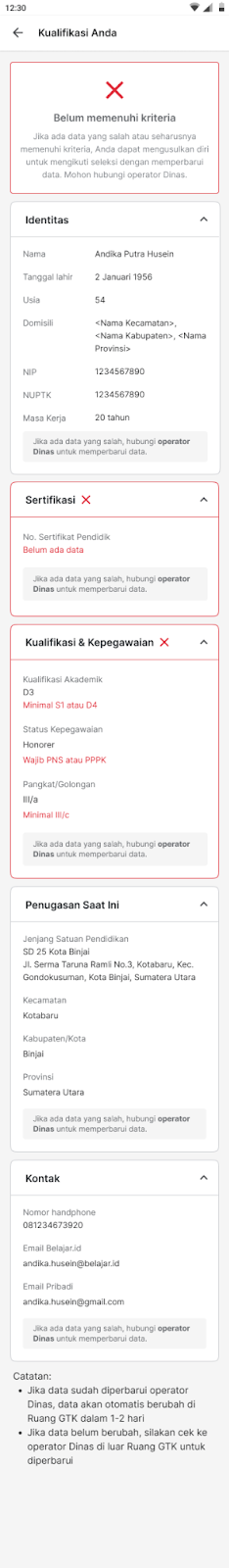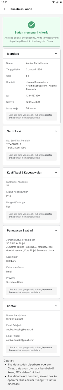 - Jika data sudah diperbarui operator dinas atau dapodik, data akan otomatis berubah di Ruang GTK dalam 1-2 hari. Jika data belum berubah, kembali cek ke operator dinas atau dapodik.