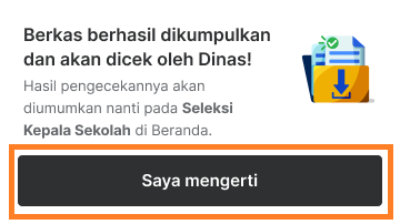 11. Jika Anda berhasil mengumpulkan berkas maka akan muncul notifikasi seperti gambar di bawah. Klik Saya mengerti untuk kembali ke halaman Proses Seleksi.