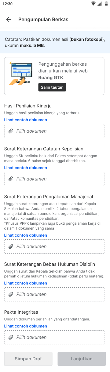 Berikut cara mengunggah berkas Seleksi Administrasi melalui Ruang GTK: