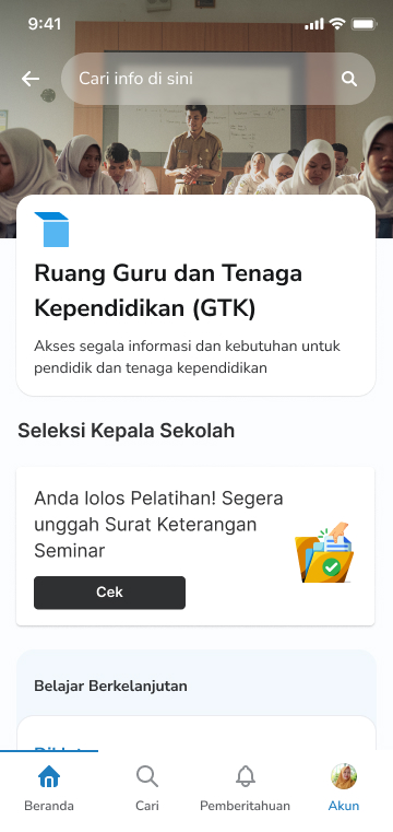 - Undangan Resmi dari Dinas Pendidikan – Guru menerima surat undangan resmi yang berisi tawaran mengikuti Seleksi Kepala Sekolah di Ruang GTK.