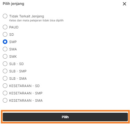 - Untuk memilih jenjang, pilih tingkatan Jenjang yang sesuai, lalu klik Pilih
