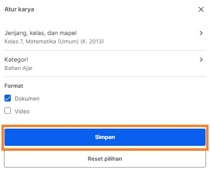 - Jika Anda sudah mengatur Karya berdasarkan Jenjang, Kelas dan Mata Pelajaran, Anda bisa klik Simpan