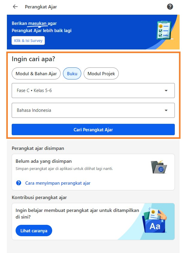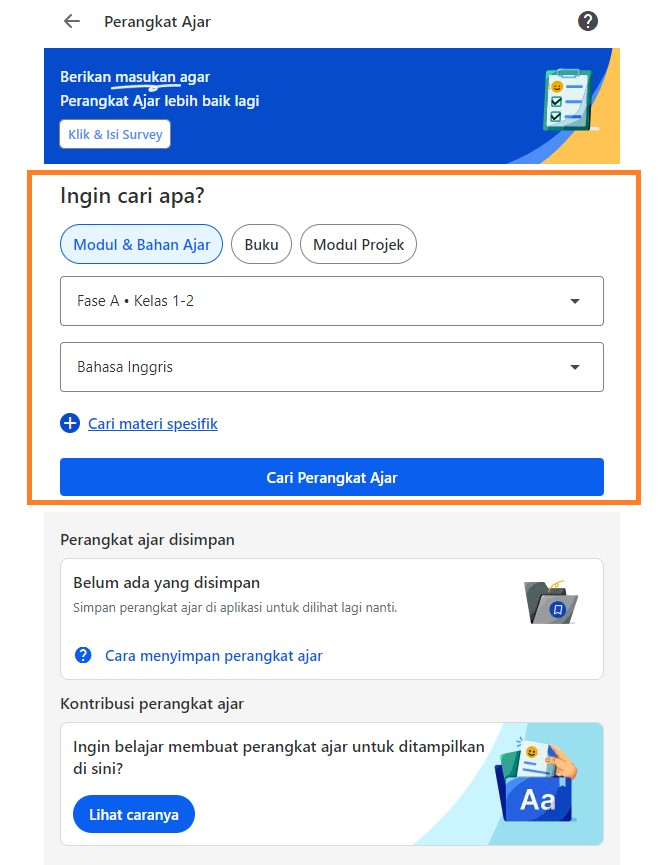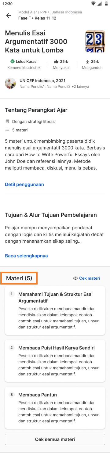 5. Pada bagian Materi, Anda bisa klik Cek Materi untuk melihat terlebih dahulu Perangkat Ajar