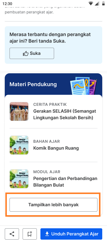 2. Jika Anda sudah menemukan Fitur Materi Pendukung, klik Tampilkan Lebih Banyak untuk melihat lebih banyak materi pendukung lainnya.