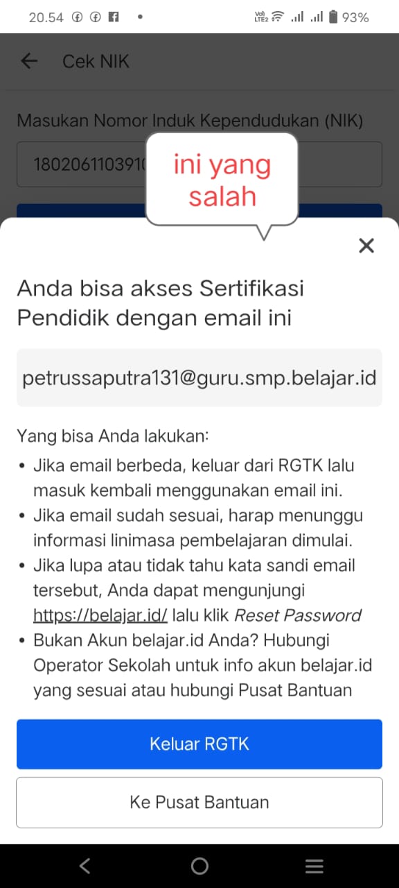 Saya guru terpanggil mengikuti PPG batch 3, akan tetapi tidak bisa masuk rgtk menu sertifikasi pendidik dengan notif saya tidak terdaftar sebagai peserta terpanggil PPG 2025. Saya coba cek NIK notif juga sama. Mohon informasi kesalahan dimana , saya lapor ke LPTK katanya data SIMPKB dengan RGTK punya saya tidak singkron. Akun belajar id saya cek sudah singkron semua. Saya bahkan sdh menerima KTM dr LPTK terkait,mohon solusinya. Berikut saya lampirkan bukti pernyataan saya di atas