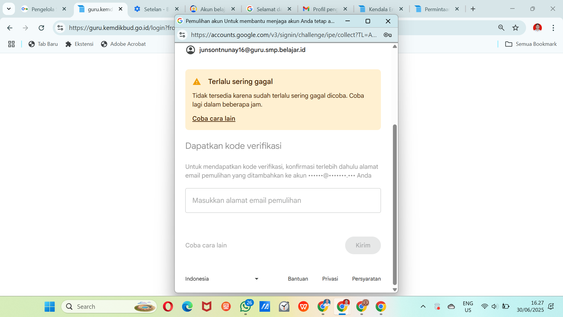 - Setelah login ke Ruang GTK, email berubah menjadi email lama/email yang tidak saya kenali