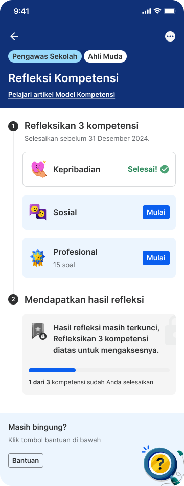 14. Selanjutnya, Anda dapat melanjutkan dengan mengerjakan Refleksi Kompetensi lainnya. Hasil dari Refleksi Kompetensi akan tersedia dan dapat dilihat setelah Anda menyelesaikan semua Refleksi Kompetensi yang tersedia. Untuk informasi lebih lanjut mengenai Hasil Refleksi Kompetensi, Anda dapat mengakses artikel ini.