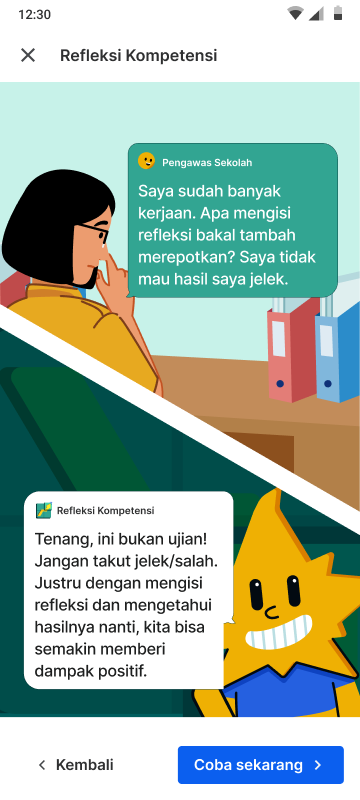Hasil Refleksi Kompetensi dapat diperoleh dengan kategori Nilai Baik atau Perlu Ditingkatkan. Bagi penilaian yang masuk dalam kategori "Perlu Ditingkatkan," Anda dapat mengembangkan kompetensi dengan memilih rekomendasi pembelajaran yang tersedia untuk memperbaiki penilaian Anda di periode selanjutnya.