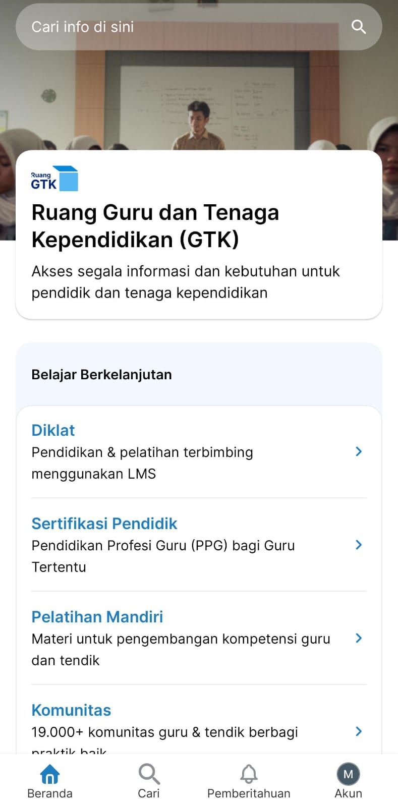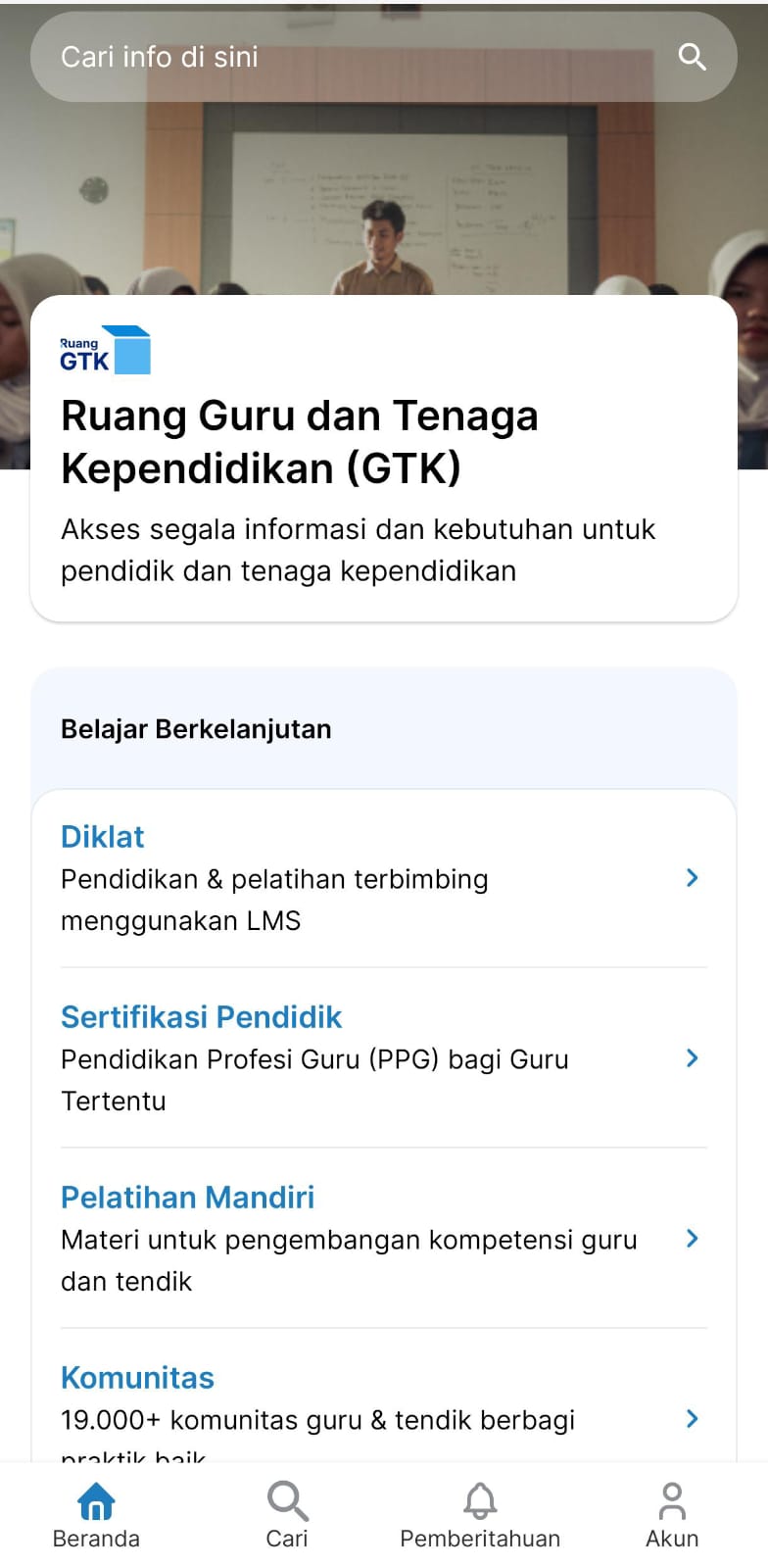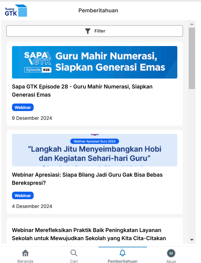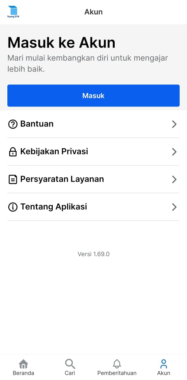 - Mulai 27 Agustus 2024, aplikasi Ruang GTK pada perangkat bersistem operasi Android versi 5 (Lollipop) tidak akan lagi menerima pembaruan. Untuk informasi lebih lanjut tentang langkah-langkah yang dapat Anda ambil agar tetap menerima pembaruan dari aplikasi Ruang GTK, silakan kunjungi artikel di sini.