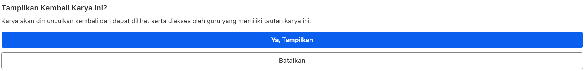 3. Klik Ya, Tampilkan. Maka karya berhasil ditampilkan kembali.