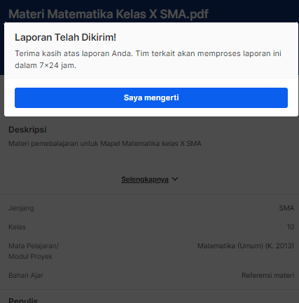 4. Laporan berhasil dikirim